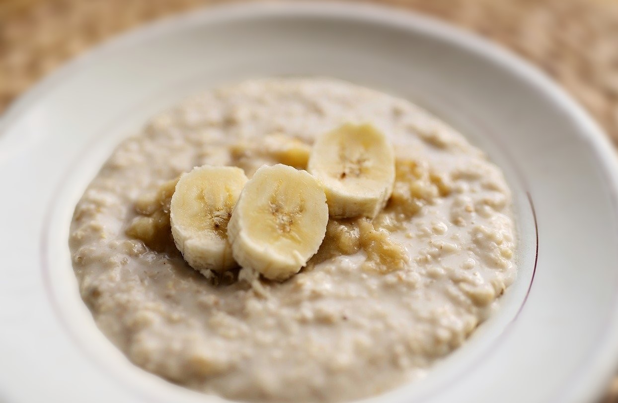 재료: 오트밀 50g, 바나나 1개, 저지방 우유 1컵, 꿀 1작은술